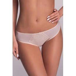 Tanga AV 1396/S v béžovej farbe sú štýlovou a pohodlnou dámskou spodnou bielizňou, ktorá sa výborne hodí na každodenné nosenie aj na výnimočné príležitosti. Sú vyrobené z hladkého, elastického úpletu a zdobené jemnou kvetinovou čipkou, ponúkajú decentný vzhľad a perfektne sedia. Model so šnúrkami krásne odhaľuje zadoček a neprejavuje sa pod oblečením. Elastický pás a bavlnená vložka v rozkroku zaručujú pohodlie a hygienu počas celého dňa. Vďaka teplej farbe je bielizeň neviditeľná aj pod svetlým štýlom. Spája sa v nej funkčnosť a ženský pôvab.