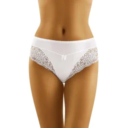Pohodlné nohavičky s klasickou líniou a mierne vyšším sedom. Hladké, zdobené krásnou čipkou, ktorá zdobí stehná, a drobnou mašličkou uprostred.