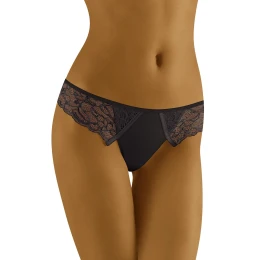 Sexy krajkové tangá pre dámy, ktoré ocenia eleganciu a pohodlie. Krásny chrbát priťahuje pozornosť...všetkých!!! Boky a chrbát z príjemnej, na tele sa trblietajúcej čipky. Na zadnej strane mašle a lesklý lem.