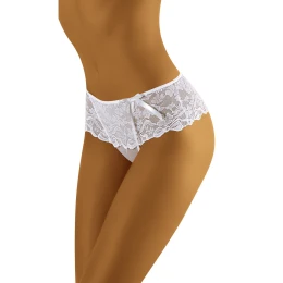 Očarujúce tangá-šortky bohato zdobené krásnou širokou čipkou. Mierne vyššia, ala šortky, múdro kombinujúce pohodlie a ladnosť. Priehľadná tkanina s priesvitným efektom.