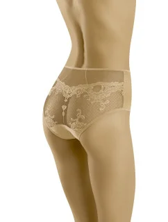 Efektívne figy, ktoré pracujú na brucho. Pri vyššom statusom, ploché švy a módy je, že utláča jemne a pekne modelovanú líniu tela. Dekoratívna výšivka dodáva ľahkosť a półprześwitujące vložky na stehná opticky predlžujú nohy.