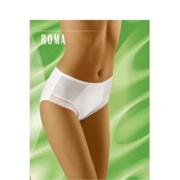 Pohodlné nohavičky, ktorých predná časť je zdobená prelamovaným vzorom a'la kabaret. S hladkým chrbtom. Klasický strih, mierne vyšší, ľahko tvaruje bruško. Okolo stehien pekne zdobené.
