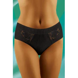 Očarujúce svojim dizajnom, veľmi ženské nohavičky s vysokým pásom, odporúčané pre ženy, ktoré ocenia krásu každého detailu. Dokonalá trojica jemných, drobných ramienok, štýlovej, kvetinovej čipky a hladkého, na dotyk príjemného úpletu viditeľného na bokoch.