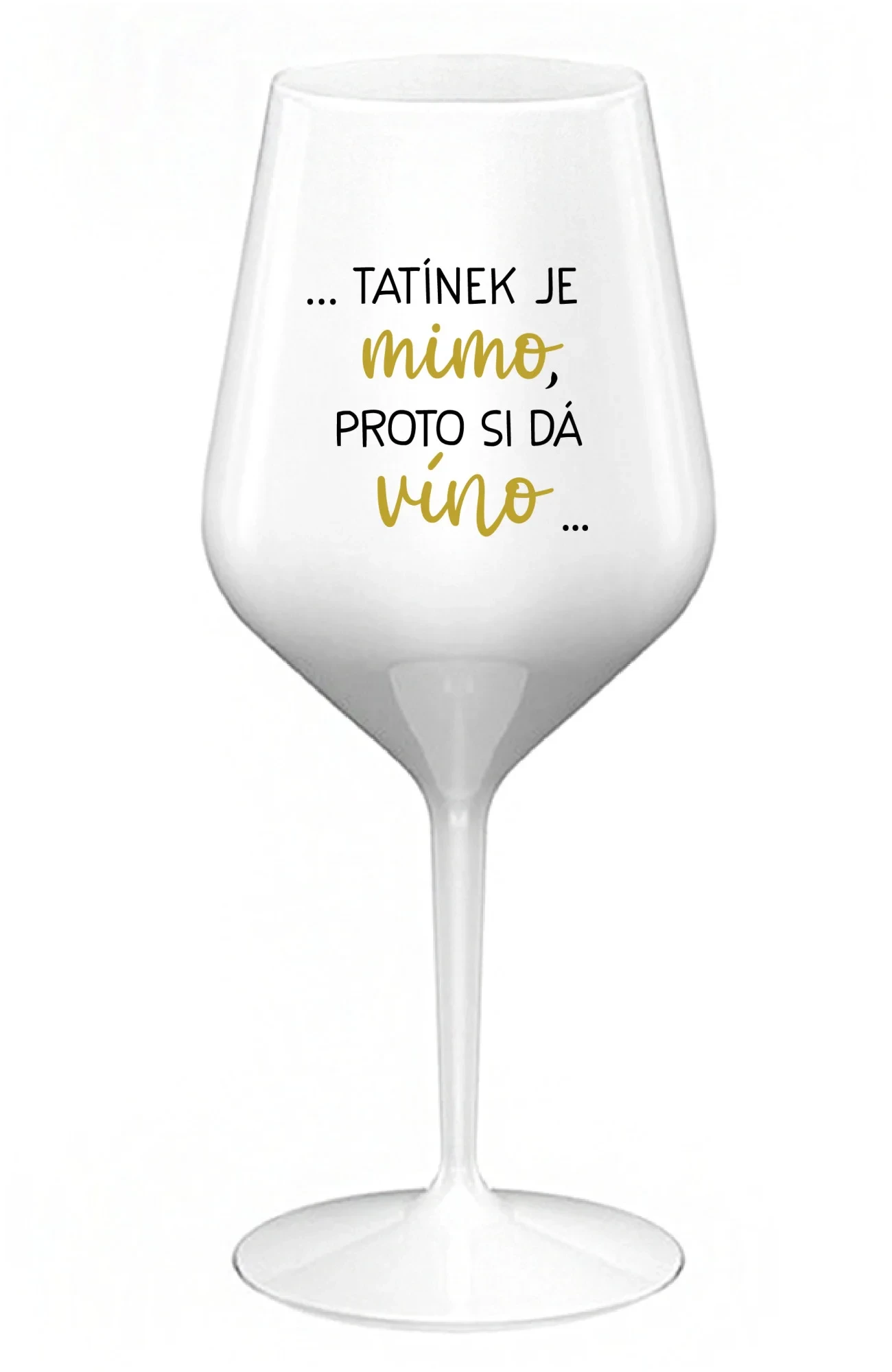 ...TATÍNEK JE MIMO, PROTO SI DÁ VÍNO... - bílá nerozbitná sklenice na víno 470 ml