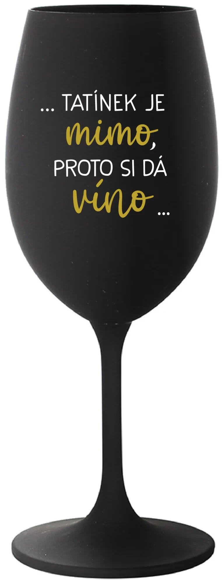 ...TATÍNEK JE MIMO, PROTO SI DÁ VÍNO... - černá sklenice na víno 350 ml