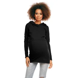Príjemná na nosenie a príjemná na dotyk tehotenská mikina vyrobená pre budúce mamičky, ktoré majú rady športový štýl a cenia si pohodlie. Skrytá vyvýšená vrstva na dojčenie, miesto pre tehotenské bruško a predĺžená tunika patria k mnohým výhodám tejto mikiny.