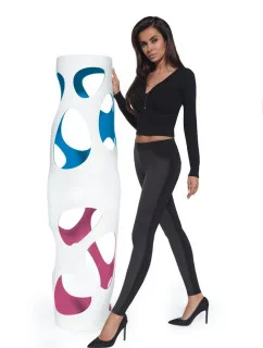 Majú dlhé nohavice, ktoré sú na konci zakončené vysokými elastickými manžetami. Vďaka nim legíny nevyzerajú tak obyčajne a na prvý pohľad pôsobí ako užšie háremové nohavice. Materiál, z ktorého sú vyrobené, je elastický a na povrchu hladký. Vnútorná strana materiálu je jemne hrejivá. Vďaka špeciálnej úprave vlákien firmou Archroma materiál lepšie prepúšťa vzduch a odvádza telesnú vlhkosť. V páse je všitá guma široká cca 5cm. Na prednej časti po oboch stranách môžete využiť praktické všité vrecká, na zadočku sú imitácie vreciek. Vo stehennej časti je látka zošitá zaujímavým spôsobom, ktorý vytvára geometrický obrazec.