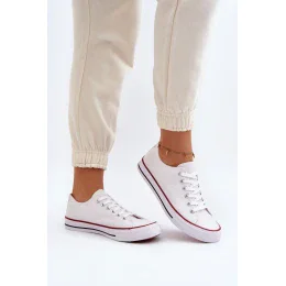 Dámske tenisky z textilného materiálu. Stoja na gumovej podrážke. Zaoblená špička. Tento klasický strih sa určite hodí takmer ku každému jarnému/letnému vzhľadu s nohavicami, sukňami a šatami.