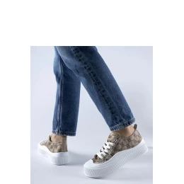 Hnedé tenisky zdobené monogramom Cavi sú skvelou voľbou na letné dni. Ich módny dizajn určite dodá štýl vášmu letnému šatníku. Tenisky majú okrúhlu špičku, nízky profil a veľmi pohodlne sa nosia. Sú vyrobené z kvalitnej gumy a poskytujú výbornú priľnavosť na rôznych povrchoch. Vďaka šnurovaniu možno ľahko prispôsobiť prispôsobenie tenisiek nohe. Tieto tenisky sú skutočným hitom na horúce dni! - Vonkajší materiál: látka - Výška: nízka - Polstrovanie: žiadne - Materiál podrážky: guma - Farba podrážky: biela - Zapínanie: šnurovanie - Kolekcia: leto Objednávajte ešte dnes a užívajte si pohodlie a štýl počas letných dní!