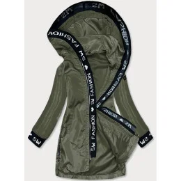 Tenká dámska bunda v khaki farbe s ozdobnou lemovkou (B8145-11)
