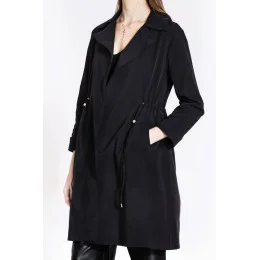 Kabát má ohrnuté 7/8 rukávy, dvě kapsy a nemá zapínání. Model se v pase stahuje. Kabát má délku nad kolena a má podšívku.