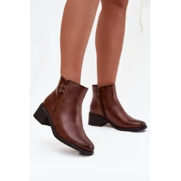 Ocieplane Botki Damskie Na Klocku Brązowe Delmira