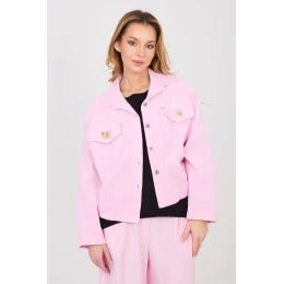 Moderní dámská kožená bunda ve stylu casual, ideální na každodenní přechodné dny. Tento model kombinuje klasický střih bomberky s moderním, lehce retro dokončením, vytvářející univerzální nabídku pro mnoho stylizací. Bunda je vyrobena z vysoce kvalitní bavlny s přídavkem elastanu, co zaručuje pohodlí nošení a jemnou elasticitu materiálu. Má hladký vzor, krátký střih a dlouhý rukáv, který dodává lehkost a moderní charakter. Praktické kapsy s klopami vpředu umožňují pohodlné ukládání drobností, a zapínání na knoflíky a vsazená guma na spodku zajišťují přizpůsobení a pohodlí nošení. Další výhodou jsou odnímatelné ozdobné brože, které umožňují personalizovat vzhled bundy. Model je dokončen klasickým límečkem, co zdůrazňuje elegantní charakter bomberky, zachovávající zároveň casual styl. Je to ideální volba pro ženy hledající praktickou a zároveň stylovou bundu na jaro nebo podzim.