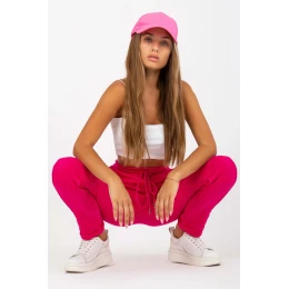 Dámske tepláky s vysokým pásom, zaväzovaním a elastickým pásom. Vrecká na bokoch.