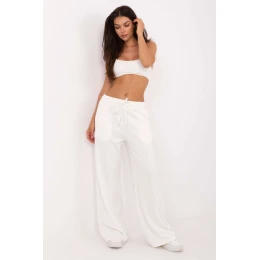 Nohavice v ležérnom štýle, ideálne na každý deň. Sú vyrobené z mäkkej zmesi viskózy, polyesteru a elastanu a poskytujú pohodlie, priedušnosť a ľahkú elasticitu materiálu. Hladká štruktúra tkaniny im dodáva univerzálny charakter, vďaka čomu sa ľahko kombinujú s mnohými štýlmi. Model má vysoký pás a široké nohavice, ktoré sa pri pohybe krásne prispôsobia a zvýraznia voľný strih. V páse je praktická šnúrka na prispôsobenie sa postave a bočné vrecká s vsadkami dodávajú funkčnosť. Moderné a pohodlné, skvelá voľba na každodenné ležérne oblečenie.