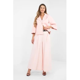Elegantní dámské široké teplákové kalhoty typu palazzo jsou spojením pohodlí a elegance v moderním provedení. Vyrobene z vysoce kvalitní směsi viskózy, polyesteru a elastanu, jsou látkou jako máslo, neuvěřitelně měkkou, jemnou a mimořádně příjemnou na dotek. Materiál se nádherně usazuje na postavě, poskytující pohodlí po celý den. Model s vysokým pasem má gumu ve střední části pasu, která zaručuje ideální přizpůsobení bez pocitu stísnění. K tomu je přiložen pásek se zapínáním, který zdůrazňuje pas a dodává celku elegantní charakter. Absence klasického zapínání zvyšuje pohodlí nošení. Široké nohavice ve stylu palazzo dodávají postavě lehkost a volnost, a ozdobné záhyby vpředu dodávají kalhotám rafinovaný akcent. Hladký vzor dělá model univerzálním a snadno kombinovatelným, skvěle se hodí jak do každodenního nošení, tak do práce. Boční kapsy zvyšují funkčnost, spojují praktičnost s elegantním stylem.