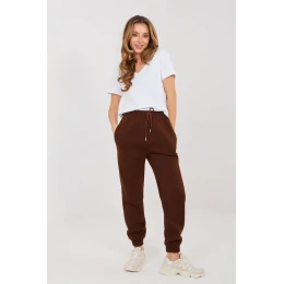 Elegantní teplákové kalhoty typu joggery jsou ideální kombinací pohodlí a módního, sportovního charakteru. Skvěle se hodí jak na každý den, tak i při fyzické aktivitě nebo víkendovém odpočinku. Hladký vzor jim dodává univerzálnost, díky čemuž se snadno sladí s mikinou, tričkem nebo sportovní bundou. Model s vysokým pasem zajišťuje pohodlí a skvělé přizpůsobení postavě. V pase je praktické šňůrkování, které umožňuje individuální nastavení a ideální usazení v pasu. Postranní kapsy zvyšují funkčnost, bez problémů v nich uschováte nejnutnější věci. Nohavice jsou zakončeny elastickými manžetami, které zdůrazŎují sportovní styl a brání zavinutí materiálu. Kalhoty jsou vyrobeny z vysoké kvality směsi bavlny a polyesteru, což zaručuje trvanlivost, měkkost a pohodlí při nošení. Dodatečné zateplení zajišťuje, že se tento model skvěle hodí i do chladnějších dní, poskytující příjemné teplo. Jedná se o praktický a nad