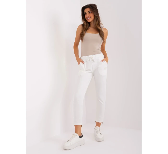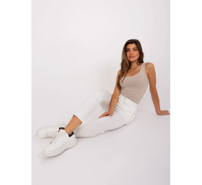 Tepláky vo farbe ecru s nohavicami a vreckami.