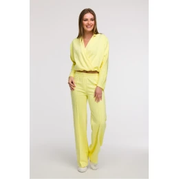 Štýlové a pohodlné nohavice so širokými nohavicami sú ideálnou voľbou pre ženy, ktoré ocenia pohodlie a módny vzhľad. Sú vyrobené z jednofarebnej tkaniny bez dodatočnej podšívky, takže budú vyzerať skvele v každodennom aj trochu elegantnejšom smart casual štýle. Široké a dlhé nohavice s prešívaním v prednej časti dodávajú postave ľahkosť a opticky predlžujú nohy. Nohavice majú klasický regular strih a pohodlný elastický pás, ktorý zaručuje voľnosť pohybu a jednoduché prispôsobenie. Nemajú žiadne vrecká, čo zdôrazňuje minimalistický charakter modelu. Strih bol navrhnutý tak, aby sa hodil na rôzne typy postáv, obzvlášť vhodný je pre postavu v tvare hrušky, čím pomáha vyvážiť proporcie tela. Navrhnuté a ušité v Poľsku.