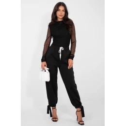 Pohodlné tepláky typu joggers jsou skvělým návrhem pro každodenní casual stylizace. Skvěle se osvědčí jak na každý den, tak i do práce v méně formálním dress codu, kombinují pohodlí nošení s moderním vzhledem. Hladký vzor jim dodává univerzální charakter a usnadňuje kombinaci s různými kousky oblečení. Tepláky jsou vyrobeny z měkké a příjemné viskózy s přídavkem elastanu, což zajišťuje lehkost, pružnost a volnost pohybu po celý den. Vysoký pas zdůrazňuje pas a zajistí pohodlné přizpůsobení, a šněrování v pase umožňuje individuální regulaci. Nohavice jsou zakončeny stahovacími manžetami s šněrováním, což jim dodává sportovně-městský charakter a zajišťuje dobré přizpůsobení. Praktickým doplňkem jsou boční kapsy, ideální na drobnosti. Jedná se o univerzální model, který skvěle ladí s mikinou, tričkem nebo elegantní košilí, vytvářející stylový a pohodlný vzhled.