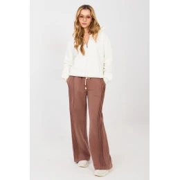 Dámské široké nohavice s dresovým střihem jsou spojením pohodlí a módního casual stylu. Vyrobena z vysoké kvality bavlny s přídavkem polyesteru, zaručují pohodlí nošení, odolnost a příjemný pocit měkkosti po celý den. Model se vyznačuje širokými nohavicemi, které se volně usazují na postavě a dodávají celku moderní charakter. Ozdobné prošívání běžící po bocích nohavic po celé délce jemně zdůrazňuje linii nohou a dodává kalhotám originální akcent. Vysoký pas krásně zdůrazňuje pas, a šňůrka v pase ve spojení s vsazenou gumou zaručuje ideální přizpůsobení a pohodlí nošení. Praktické boční kapsy zvyšují funkcionalitu a dělají z kalhot skvělý doplněk pro každodenní outfit. Hladký vzor a univerzální střih je činí skvělou základnou pro mnoho outfitů jak s mikinou, tak i s přiléhavým topem.