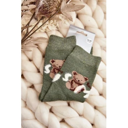 Ciepłe Bawełniane Skarpety Z Misiem Zielone