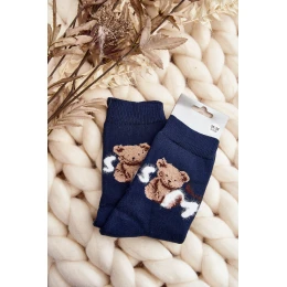 Ciepłe Bawełniane Skarpety Z Misiem Granatowe