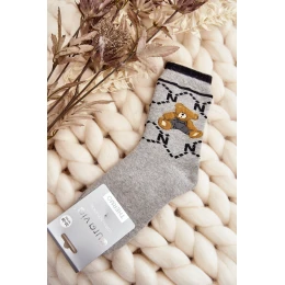 Teplé Bavlněné Ponožky S Medvídkem Šedé