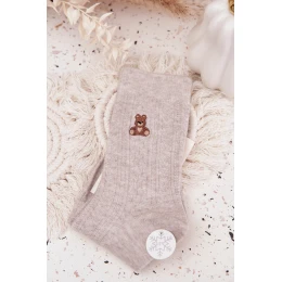 Dámské ponožky s přídavkem vlny jsou teplým a útulným návrhem na zimní dny. Měkké a pohodlné, skvěle zahřejí nohy, zajišťujíc pohodlí po celý den. Roztomilý motiv malého medvídka jim dodává sladký zimní charakter. Ideální pro každodenní nošení doma nebo jako dárek.