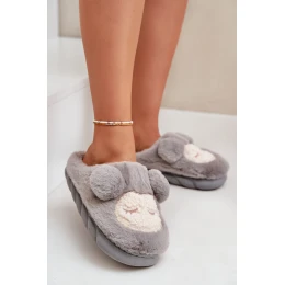 Ciepłe Futrzane Kapcie Damskie Szare Jozelinetta