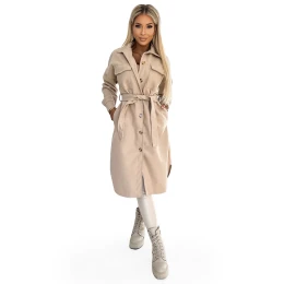 Pridanie recenzie k Teplý béžový kabát s knoflíky a zavazováním v pase model 21883682 - numoco basic