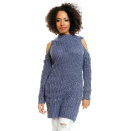 Dlhý tehotenský sveter s polovičným zipsom v hornej časti a širokým rebrovaním v spodnej časti, vyrobený z mäkkej, nadýchanej akrylovej priadze s prímesou mohéru. Originálne dlhé rukávy s koketnými odhalenými ramenami a príjemná priadza zaručujú pohodlie a módny vzhľad.