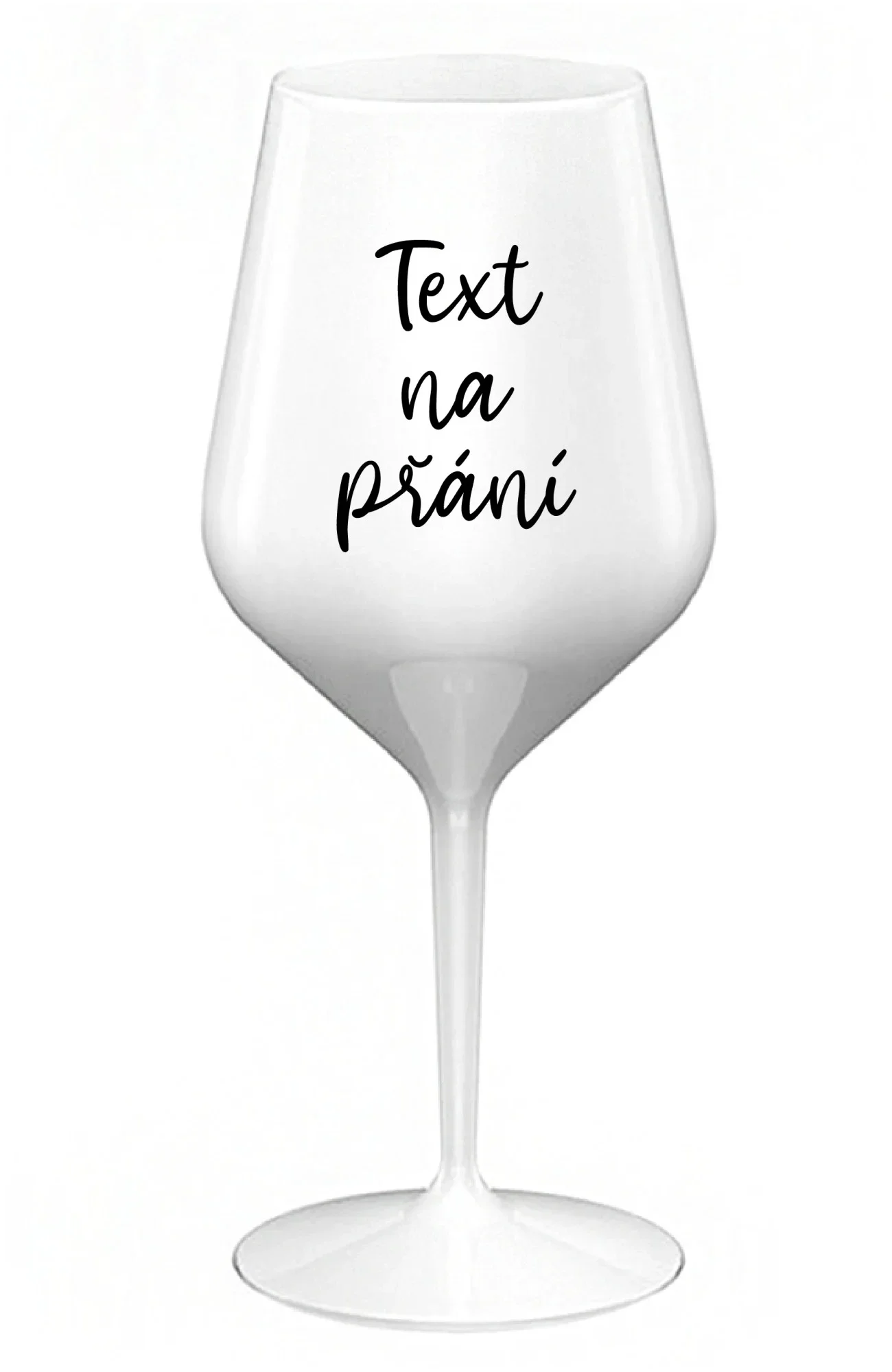 TEXT NA PŘÁNÍ - bílá nerozbitná sklenice na víno 470 ml