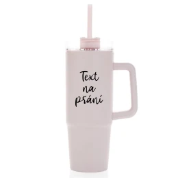 TEXT NA PŘÁNÍ - růžový cestovní termohrnek s průhledným víčkem 900 ml