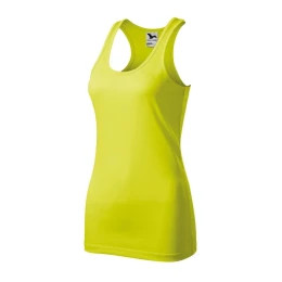hladký, rýchloschnúci materiál mierne priliehavý strih s bočnými švami vystrihnutá zadná časť tielka (racerback) hlbší okrúhly výstrih výstrih a prieramky podšité vrchným materiálom ideálne na šport a fyzické aktivity vhodné na sublimačnú potlač (svetlé farby)