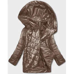 Tmavobéžová dámska bunda s asymetrickým zipsom (B8087-46046)
