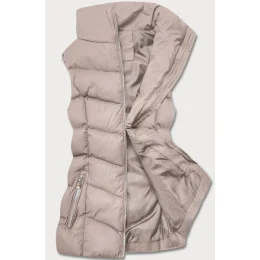 Tmavo béžová páperová dámska vesta (5M719-62)