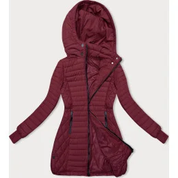 Tmavo červená dámska bunda s kapucňou pre prechodné obdobie (2M-017)