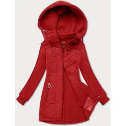 Tmavě červená rozepínací dámská mikina z různých spojených materiálů model 20722433 - LHD