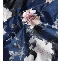 Jedna strana bundy je prošívaná a druhá je květovaná. Bunda má dvě kapsy a zapíná se zipem. Model má délku k bokům.