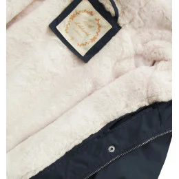 Tmavě modrá dámská zimní bunda parka s kapucí a odepínací kožešinovou podšívkou model 21242084 - Libland