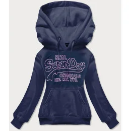 Tmavomodrá krátka dámska mikina s potlačou (26016)