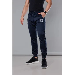 Tmavě modré pánské teplákové kalhoty s potiskem model 18347905 - J.STYLE