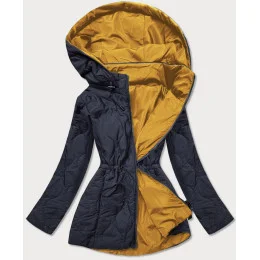 Tmavo modro-žltá obojstranná dámska prešívaná bunda (MHM-W589)