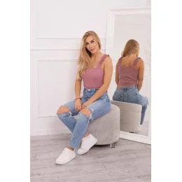 Predstavujeme vám módnu blúzku. Blúzka bez ramienok s volánikmi. Priliehavá blúzka z rebrovanej tkaniny. Blúzka je vyrobená z vysoko kvalitného materiálu. Veľkosť je univerzálna a vyhovuje dámam, ktoré nosia veľkosť S, M alebo L.