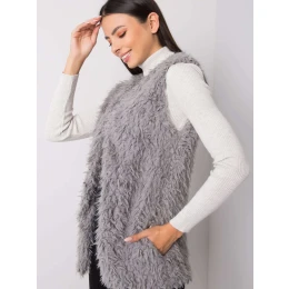 Tmavosivá kožušinová vesta.