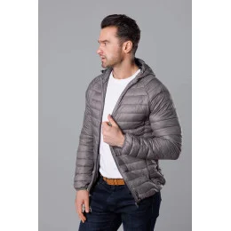 Tmavosivá pánska prešívaná bunda s kapucňou (HM112-2)