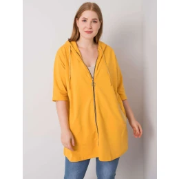 Tmavožltá dámska plus size mikina na zips.