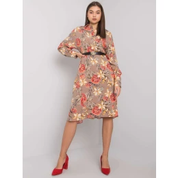 Tmavo béžové vzorované šaty.