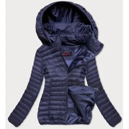 Tmavo modrá prešívaná dámska bunda s kapucňou (2021-09)